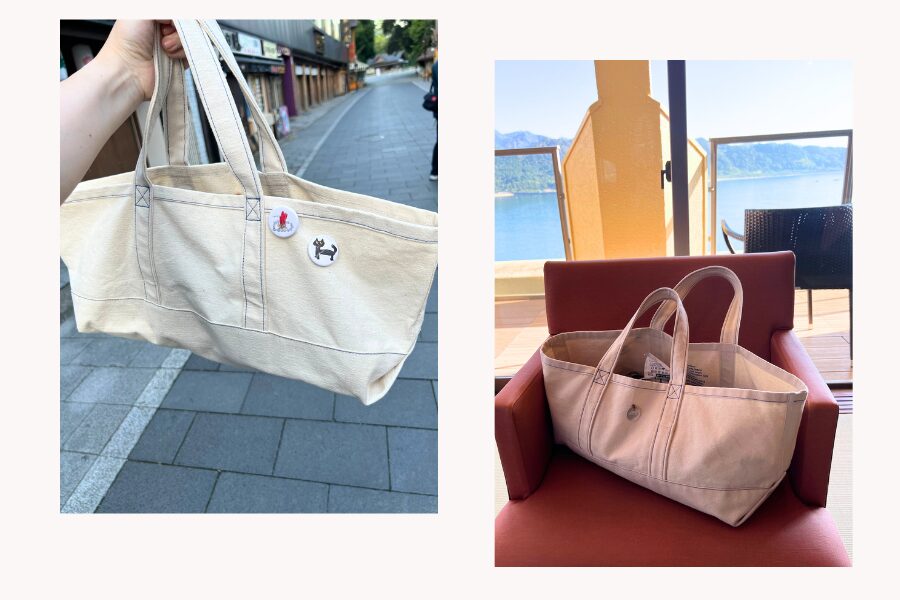 ひの:そう、普通のトートだとバゲットが縦に飛び出して折れそうになるけれど、横長なら安定して収まるんです。パンが潰れる心配をせずに歩けるのは、パン旅においてすごく重要。